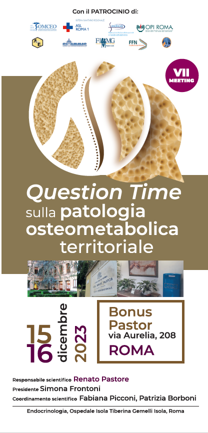 Eventi patrocinati TuttiProssimi20262025202420232022202120202019201820172016TuttiProssimi20262025202420232022202120202019201820172016 Informazioni Evento Question Time sulla patologia osteometabolica territoriale Ven 15/12/2023Sab 16/12/2023 9:00Bonus Pastor, via Aurelia, 208 - Roma Scarica il Programma