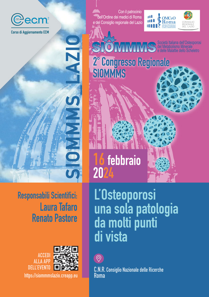 Congressi SIOMMMS TuttiProssimi202620252024202320222021201920182015TuttiProssimi202620252024202320222021201920182015 Informazioni Evento 2° Congresso Regionale SIOMMMS LAZIO Ven 16/02/2024 8:30C.N.R. Consiglio Nazionale delle Ricerche - ROMA Leggi il programma